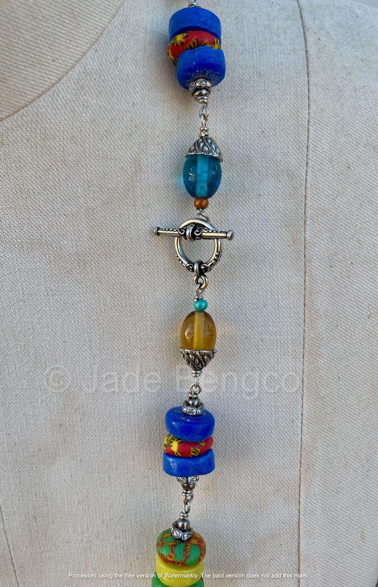One of a Kind Artisan Necklace with Assorted Vintage Glass Beads and Silver Wire